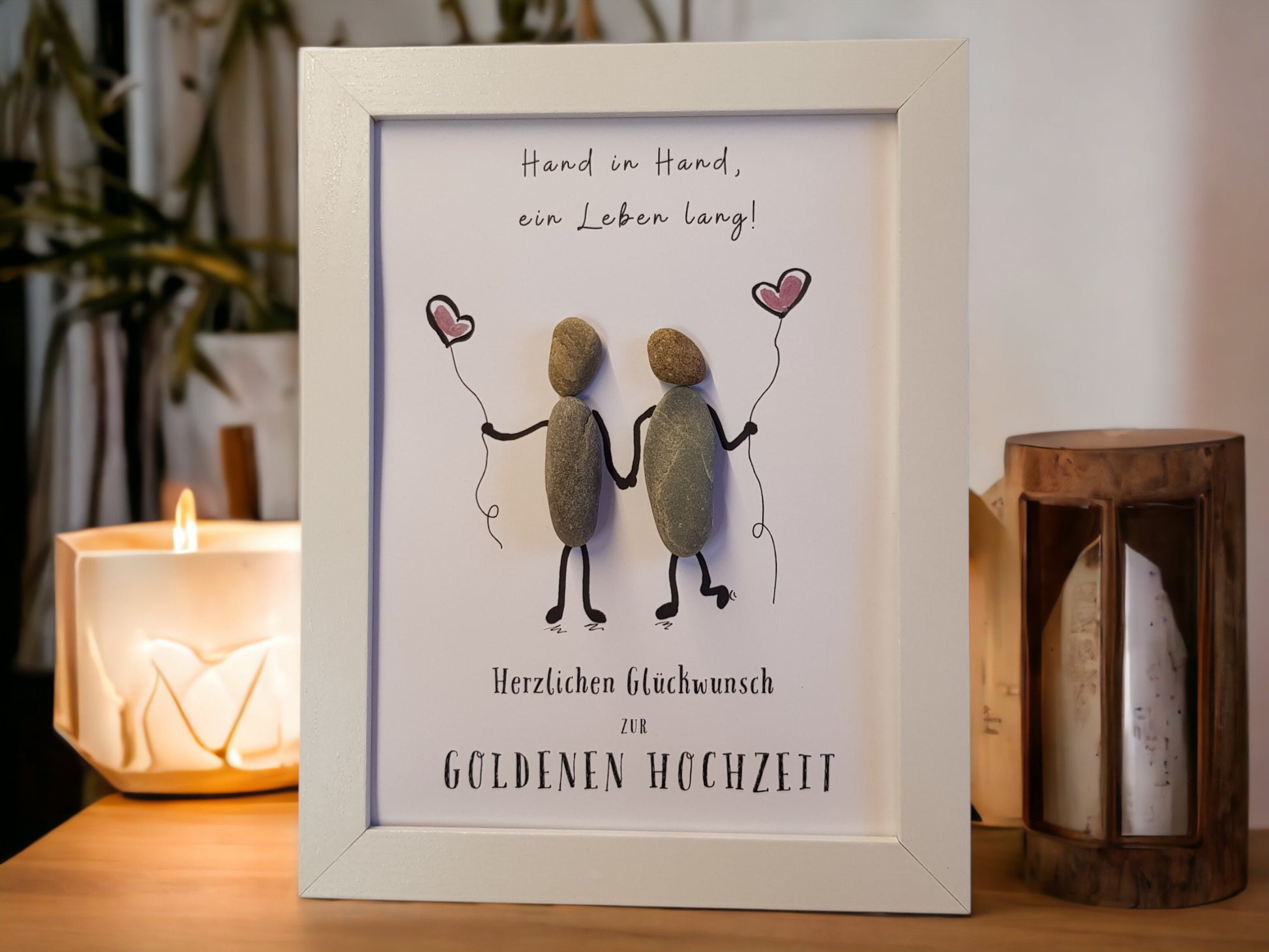 - Individuelles Geschenk zur Goldenen Hochzeit mit Kieselsteinen gestaltet