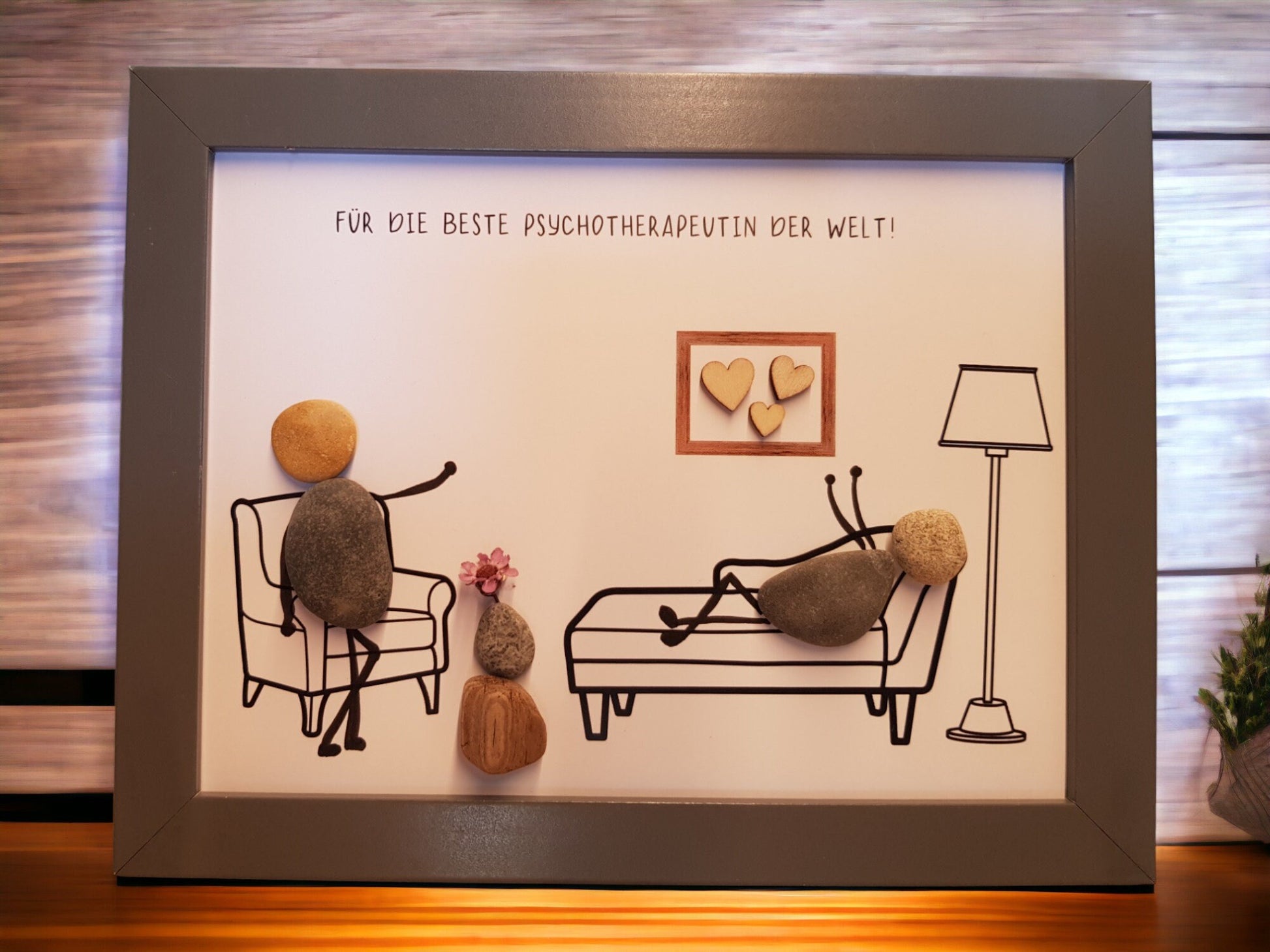 Du möchtest dich herzlich bei deinem Psychologen oder deiner Therapeutin bedanken? Dieses handgefertigte Steinbild ist ein einzigartiges Dankeschön – liebevoll gestaltet aus Naturmaterialien und auf Wunsch individuell personalisiert. Ein stilles, aber starkes Zeichen der Wertschätzung.