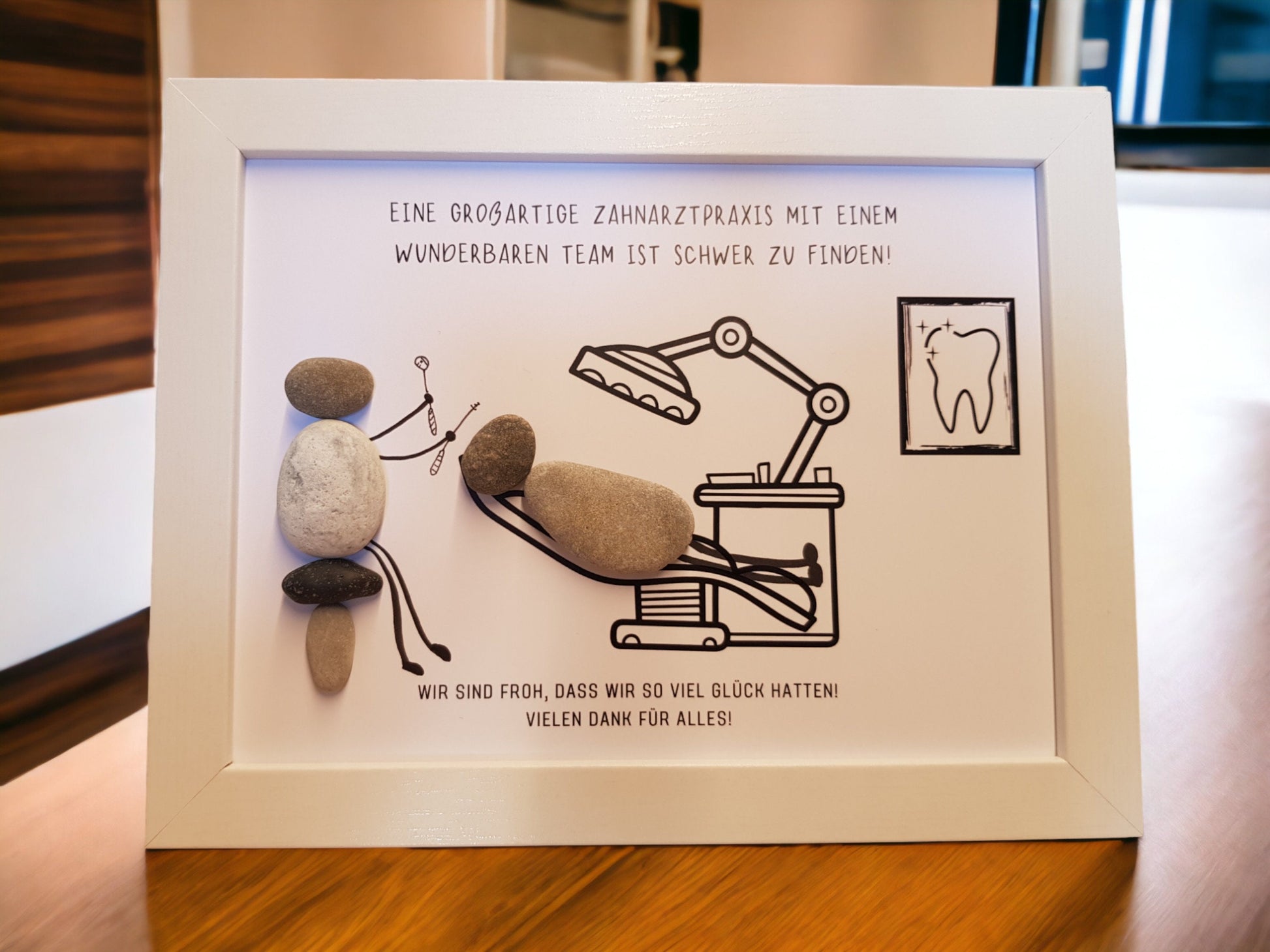 Du möchtest deinem Zahnarzt oder deiner Zahnärztin einfach mal Danke sagen? Dieses individuelle Steinbild ist ein originelles und liebevoll gestaltetes Geschenk – perfekt als Weihnachtsgruß, zum Praxisjubiläum oder einfach als kleine Aufmerksamkeit für eine tolle Behandlung.