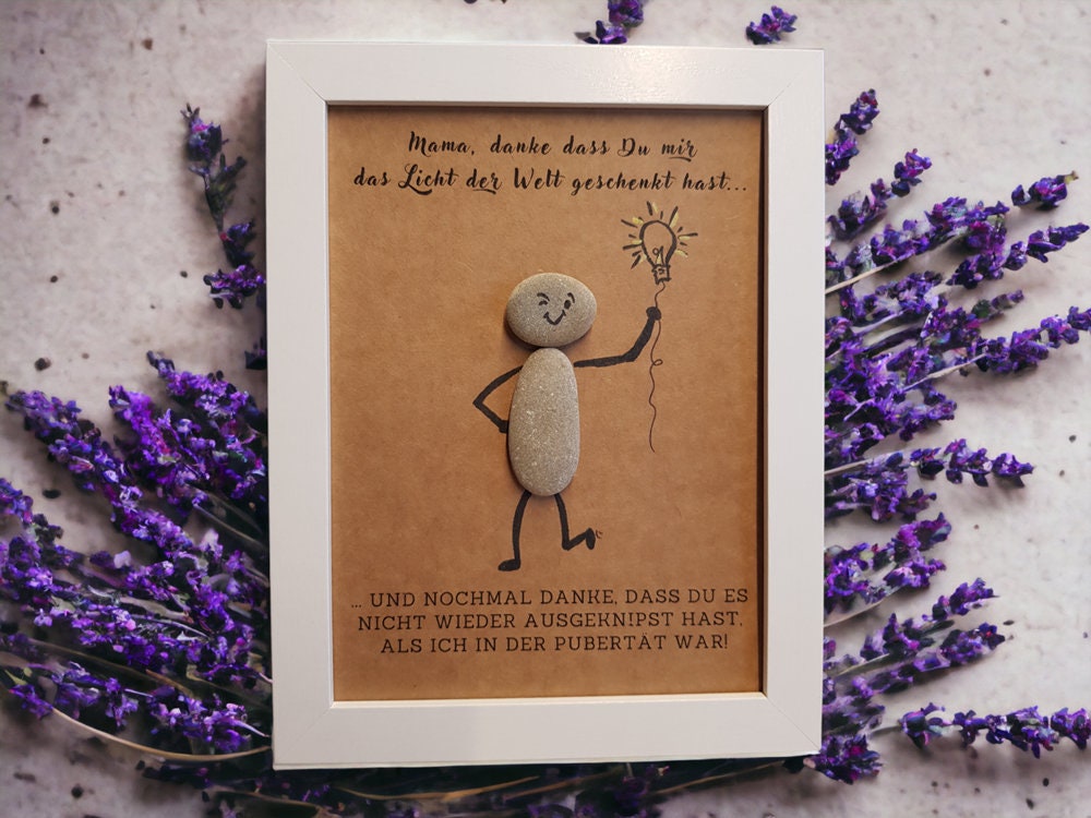 Du suchst ein freches und zugleich liebevolles Geschenk für deine Mama? Dieses handgefertigte Steinbild ist humorvoll gestaltet, wirkt wie von Kinderhand gemacht und bringt garantiert ein Lächeln aufs Gesicht – perfekt für moderne Mütter mit Herz und Humor.