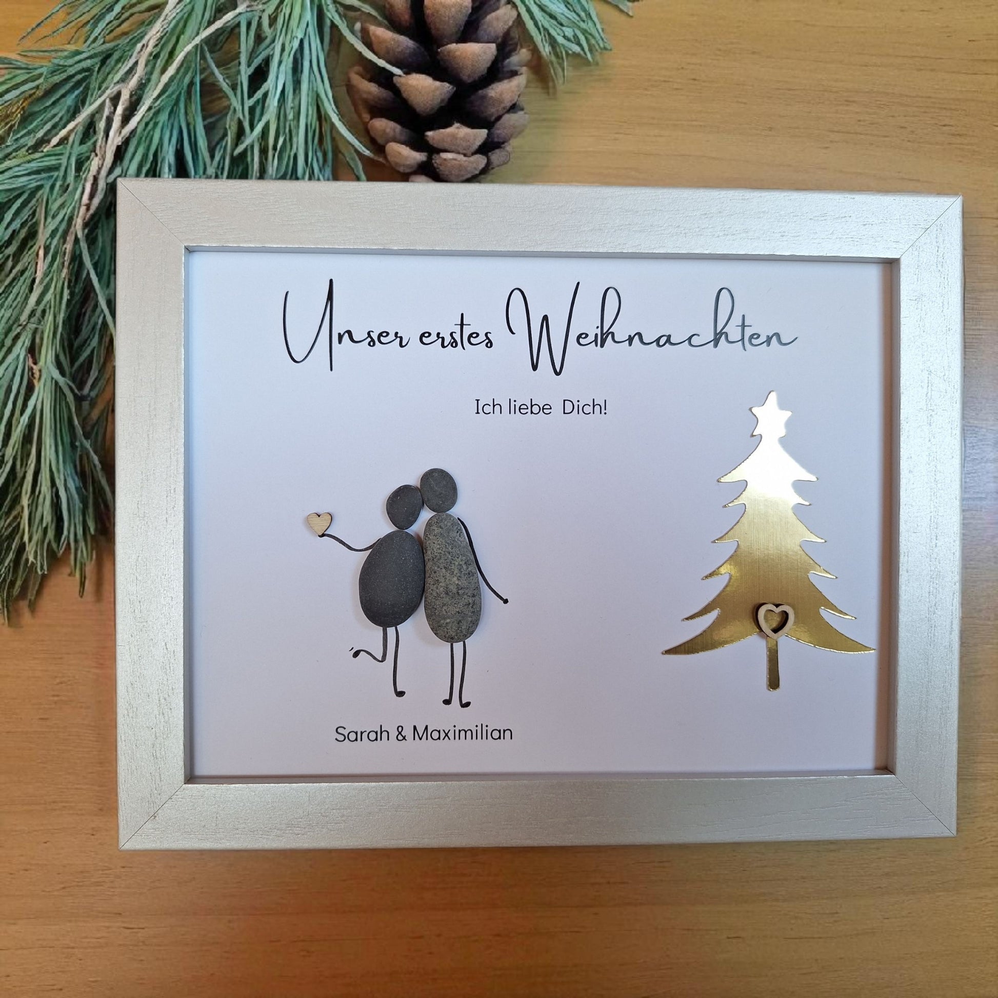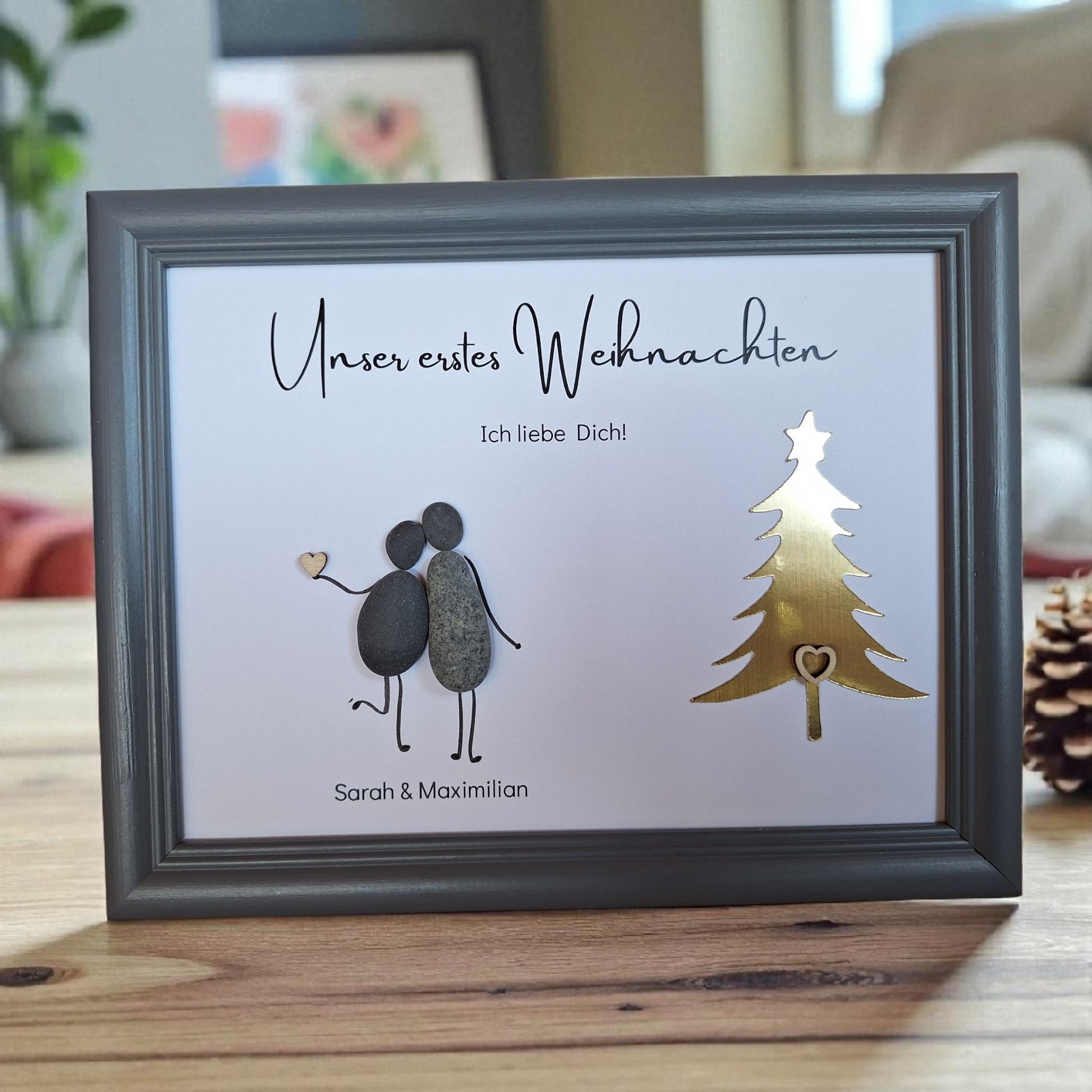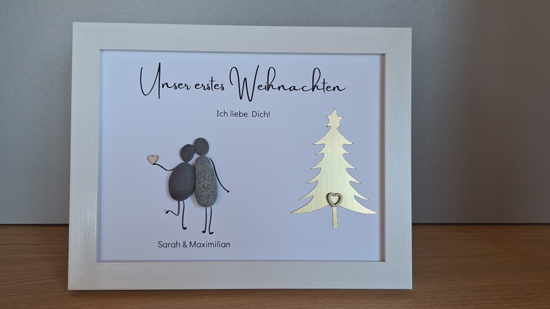 Feiert euer erstes gemeinsames Weihnachten und beschenkt euch mit diesem wunderschönen Steinbild. Schafft eine ganz besondere Erinnerung an dieses denkwürdige Fest.