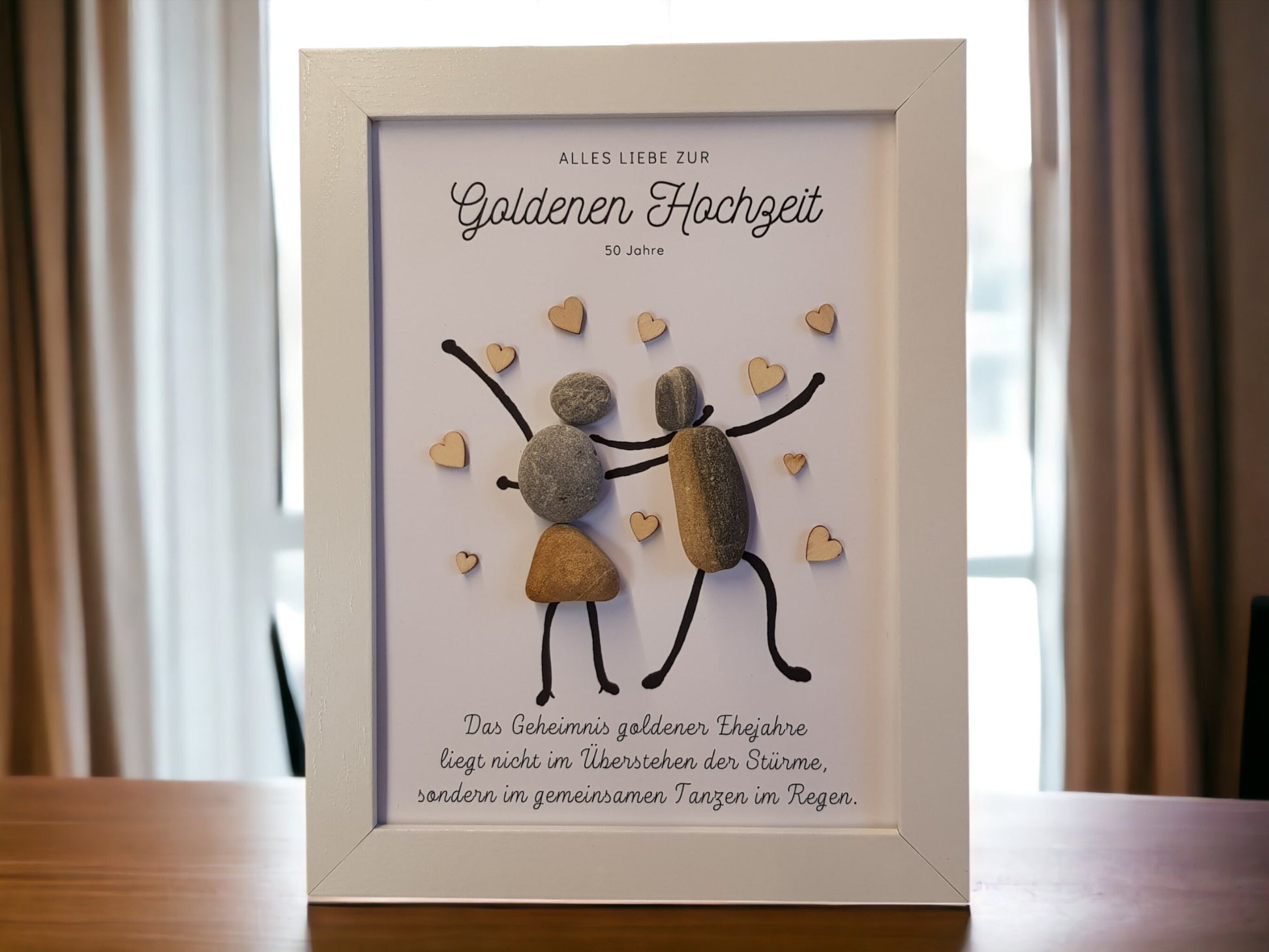 💛 Geschenk zur Goldenen Hochzeit – Handgemachtes Steinbild mit Herz